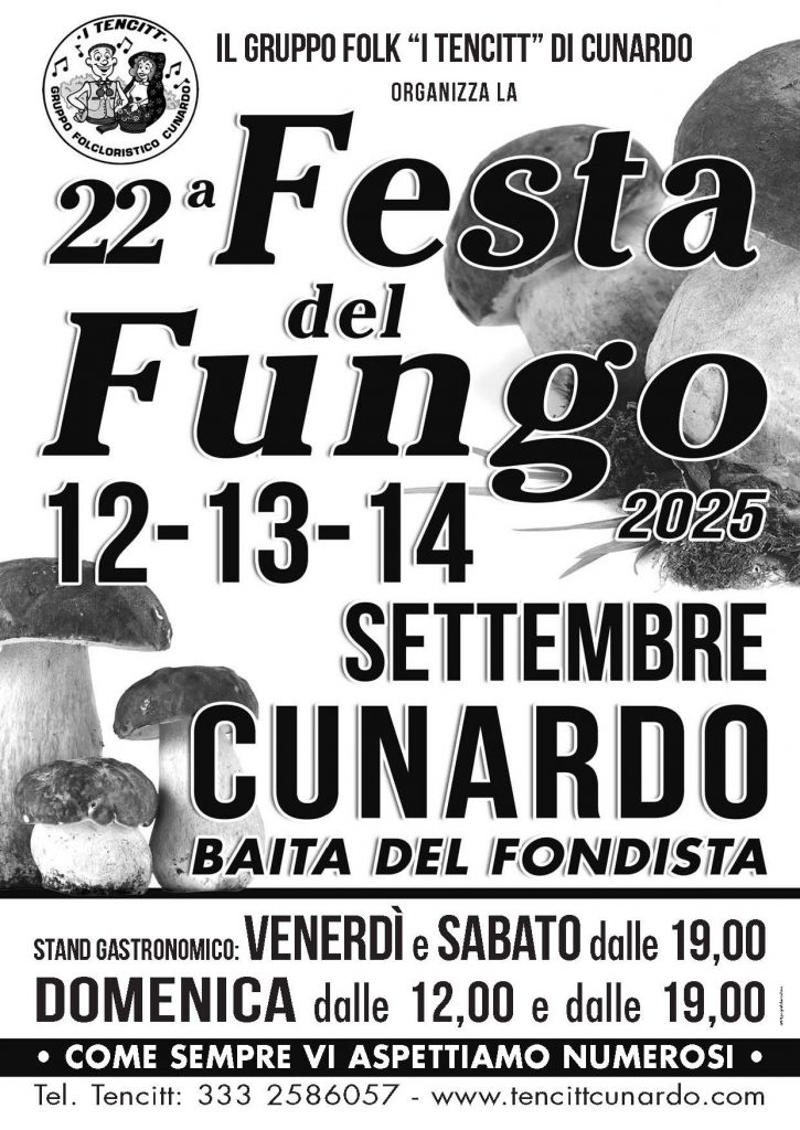 Ogni anno nel mese di Settembre “I Tencitt” organizzano la “FESTA DEL FUNGO”, evento raggiunto da migliaia di persone con prelibati piatti a base di funghi porcini freschi e tanta allegria